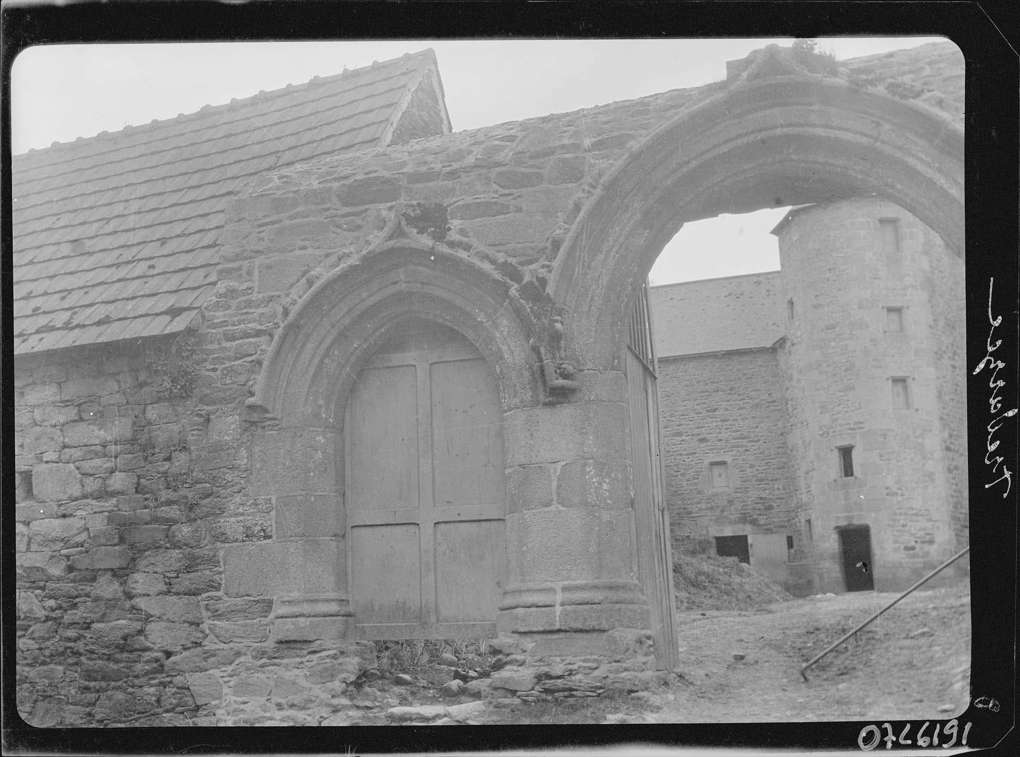 L'édifice est un ancien manoir converti en ferme, possédant un modèle de portail, avec porte charretière et porte bâtarde, assez fréquent en Bretagne. Ce portail présente des moulurations et des accolades aux rampants garnis de crochets.