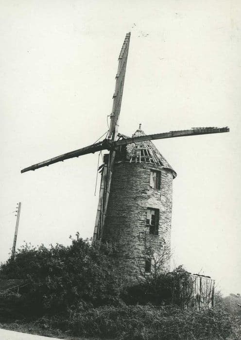 Ce moulin à vent, à farine, supposé de la première moitié du 19e siècle, est de type tour et construit en schiste. Il a été surélevé à l'occasion de l'installation des ailes Berton. Il a ensuite été doté d'un moteur à gaz pauvre avant sa cessation d'activité survenue en 1958.