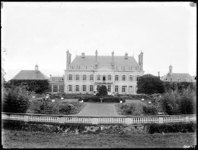 Ensemble des façades et toitures du château, y compris celles des pavillons latéraux ; escalier avec sa rampe ; salons du rez-de-chaussée ornés de boiseries, y compris la pièce Second Empire avec son plafond (cad. C 209, 210) : inscription par arrêté du 31 janvier 1962 ; Parc ; jardin d'hiver du château ; façades et toitures de la ferme et du chenil (cad. C 164, 165, 167, 169, 170, 202 à 204, 207, 210 à 216, 219 à 222, 226 à 228, 533, 613, 713, 720, 723 à 726, 728 à 731, 794 à 797) : inscription par arrêté du 19 novembre 1992