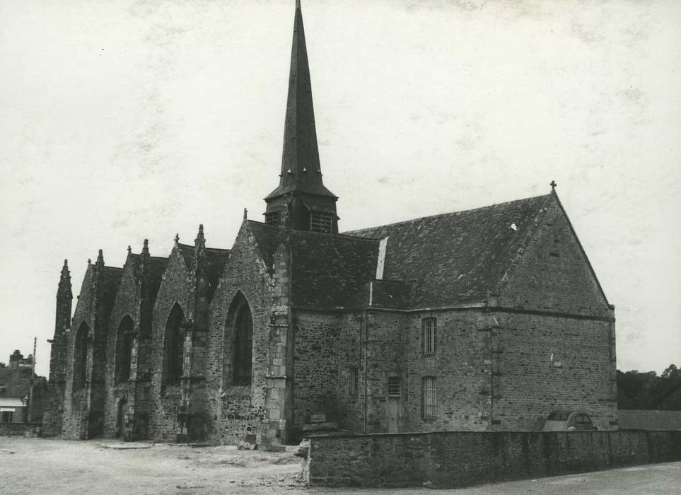 Prototype des églises de la région de Vitré, avec bas-côtés à pignonnets perpendiculaires à la nef, et construction en pierre de pays. Présence ancienne d'un monastère aujourd'hui disparu. L'église actuelle date de la fin du 15e et du début du 16e siècle. La façade ouest est datée de 1773, et est percée d'une porte ornée de deux colonnettes et d'un fronton triangulaire interrompu par une niche et un oeil de boeuf. Sur le collatéral sud, présence de gargouilles zoomorphes. Le collatéral nord possède un bas-relief figurant Saint-Pierre, et supporte une tour carrée sommée d'une flèche.