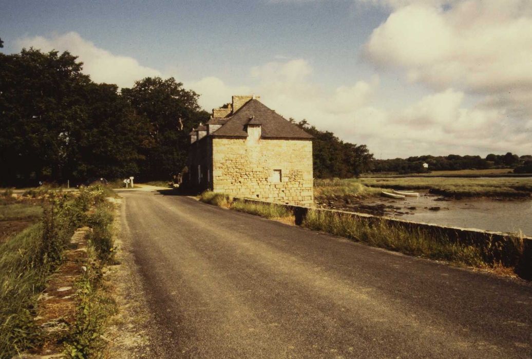 Ce moulin à marée, à farine, a été reconstruit au début du 19e siècle à l'emplacement d'un moulin mentionné en 1456, à l'extrémité et sur le flanc aval d'une digue à parement de moellons, empruntée par la route. Le moulin, en granit, était équipé de deux roues hydrauliques externes, verticales, à arbres de bois et à palettes, placées en dégradé. Le moulin comptait trois paires de meules, affectées au seigle, au froment, au mil et finalement à l'alimentation animale. Deux de ces meules étaient actionnées par la roue aval. Servant aussi de logement pour le meunier, le moulin a cessé toute activité vers 1960.