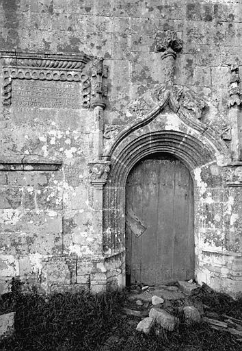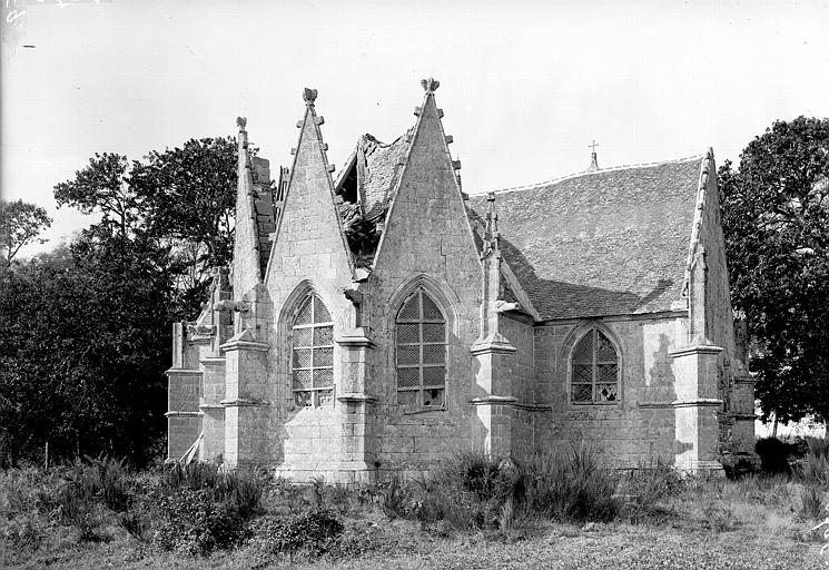 Chapelle en forme de croix latine, avec choeur polygonal et frontons très élancés. Les bas-côtés s'ouvrent de portes avec accolades et fleurons sculptés. A l'intérieur, présence de sculptures dans le choeur. Les sablières sont très ornées, dont l'une particulièrement recherchée, représentant le diable avec des paysans dansant la ridée. Egalement représentations de scènes d'animaux avec personnages, anges, armoiries