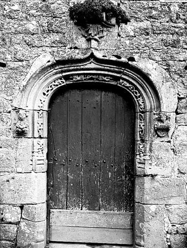 Le pignon sur cour avec porte en anse de panier de la chapelle (cad. II 15) : inscription par arrêté du 6 mai 1927