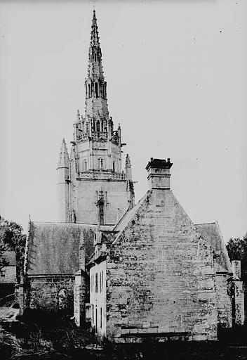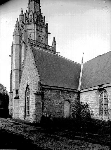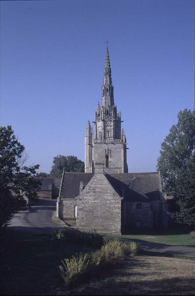 L'édifice actuel remonte, pour les parties les plus anciennes, au 16e siècle. Le clocher se présente sous forme de tour carrée surmontée d'une flèche, d'une hauteur totale de 46m. A la base du clocher s'ouvre un porche donnant accès à la nef. L'église a la forme d'une croix latine. Les fenêtres sont garnies de meneaux flamboyants et les sablières sculptées. Sur le carré du transept, clocheton renfermant une cloche de 1507. Le transept nord renferme une tribune en pierre avec ornements Renaissance. A quelques pas du portail occidental se trouve une fontaine datée de 1608. Elle se compose de trois piscines dont chacune est abritée par un petit porche à fronton aigu avec ornements flamboyants. Une autre fontaine, construite en 1790, est dédiée à Saint-Cornély.