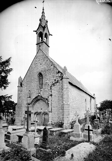 Petite chapelle située au centre du cimetière et servant surtout aux offices des défunts. Cet édifice en granit appareillé se compose d'une nef rectangulaire flanquée, sur le côté, d'une petite annexe. Le pignon occidental est surmonté d'un clocheton moderne. La porte d'entrée principale est géminée et établie sous un grand arc accoladé accompagné de pinacles. La façade sud est percée d'une porte avec accolade, flanquée de deux fenêtres à meneaux. Les deux contreforts du chevet portent des sculptures sur les glacis représentant un singe se hissant hors la masse, et une chienne allaitant ses petits. A l'intérieur, la charpente présente des poinçons et des entraits moulurés dont les départs sont engueulés par des crocodiles. La voûte en bois recouvrant la chapelle sous la toiture affecte une forme polygonale à cinq pans inégaux.