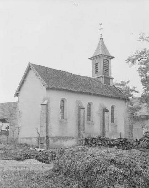 Initiales R.V. Entourant la date 1876 sur le portail ; la chapelle a remplacé en 1876 ; une chapelle du 16e siècle