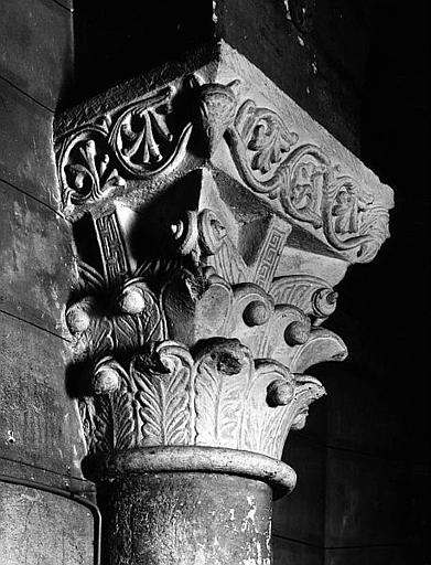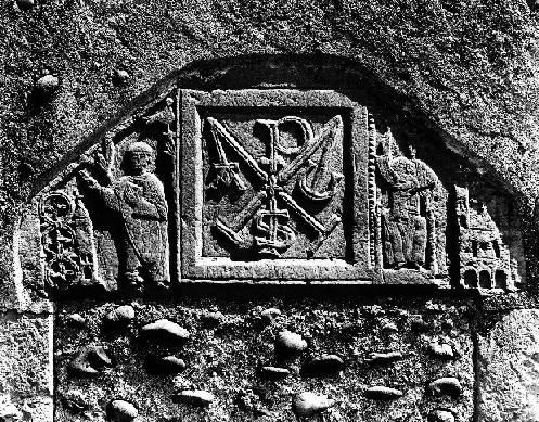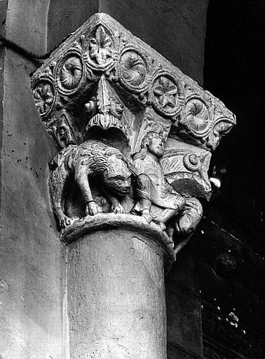 prophète ; lion ; ornement à forme végétale ; Chrisme : Vierge à l'Enfant ; homme