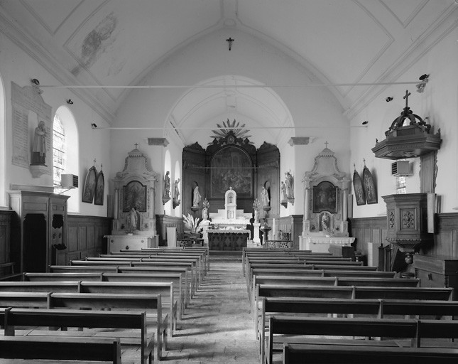 Eglise construite en 1782 (?). Rétrocession de l'église à la commune en 1805 par 4 habitants qui en avaient fait l'acquisition en l'an 8. Travaux de réparation de la toiture en 1812 (Lembourg architecte) puis en 1884, de la charpente en 1856 ( Fiévet J. architecte) , remplacement de la cloche en 1922.