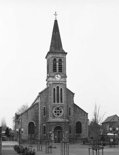 L'église a une nef à 3 vaisseaux et 5 travées, précédée d'une tour-porche, des bas-côtés à 6 travées, un faux-transept et une abside à trois pans. L'ensemble est élevé en calcaire marbrier dite pierre bleue avec un toit à deux pans couvert de matériaux synthétiques et flèche octogonale en ardoise. L'extérieur est de style néo-roman, en particulier la tour-porche avec le portail à colonnes, la rosace polylobée et le clocher à baies géminées. L'intérieur rappelle l'église précédente construite au 18e siècle : des colonnes doriques en pierre de Soignies (Belgique) soutiennent les arcades en plein cintre couvertes de voûtes en berceau plein cintre, les bas-côtés sont couverts de voûtes sur pendentif.