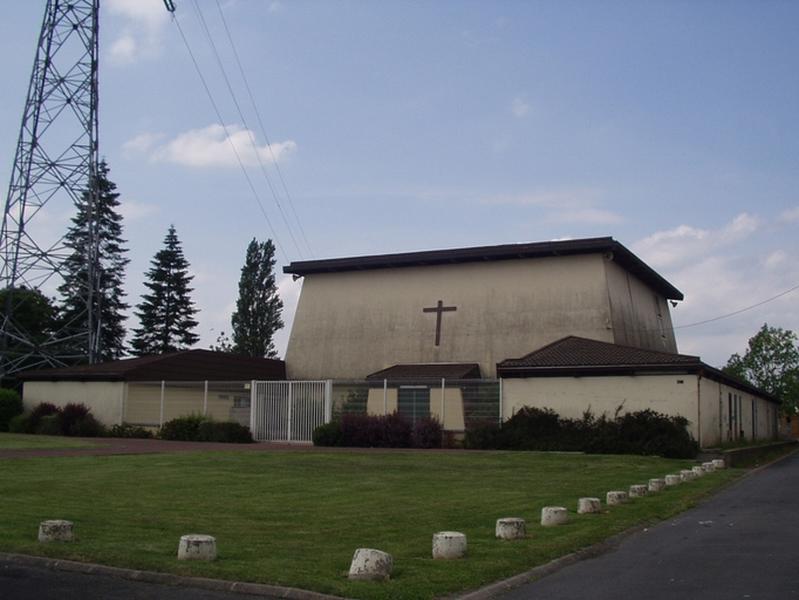 La nouvelle église en béton enduit est un centre paroissial : autour du sanctuaire de plan carré sont aménagés des salles pour le catéchisme, une chapelle de semaine, une sacristie, un bureau et un dépôt mortuaire.