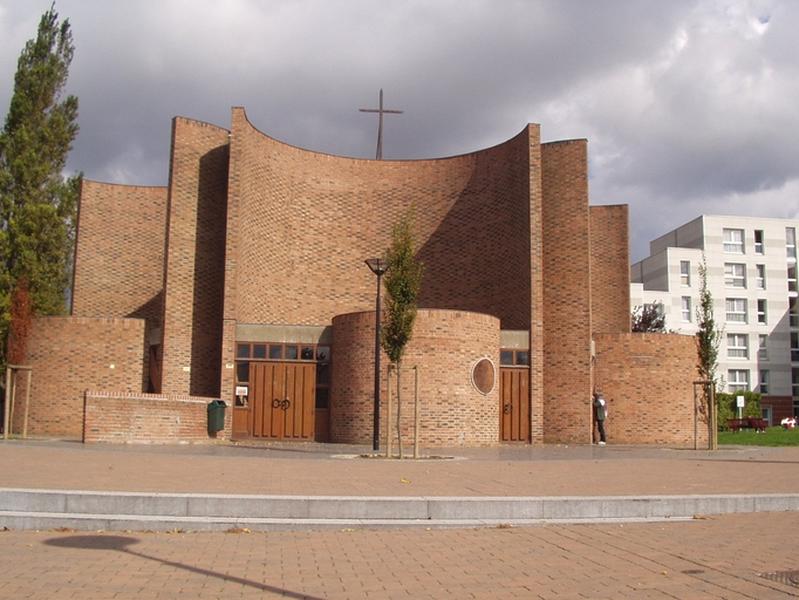 La chapelle du Saint-Esprit, d'une capacité de 60 places assises, est de plan circulaire. Les bancs sont disposés en épis à partir de l'autel. Six anneaux se greffent sur le sanctuaire : trois salles polyvalentes de 50 places pouvant communiquer avec l'espace central grâce à des parois amovibles, une salle de réunion indépendante de 50 places, un ensemble sacristie et bureau, un porche d'entrée. L'ensemble est en matériaux bruts, brique et béton. L'éclairage naturel obtenu par des ouvertures verticales met en valeur les formes circulaires du sanctuaire. Les vitraux sont de Blanchet et Lesage. Le sculpteur Luc Six a réalisé pour la chapelle le Christ en croix, le tabernacle et le pupitre.