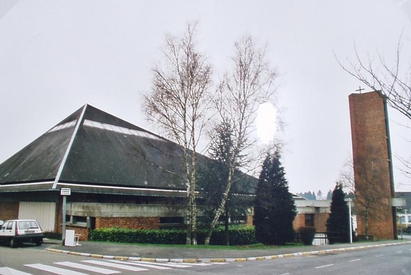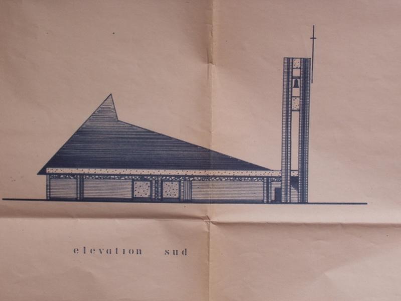 L'édifice en brique et béton de plan rectangulaire comporte un vaisseau, une chapelle de semaine, une sacristie. Un campanile hors oeuvre signale l'église.