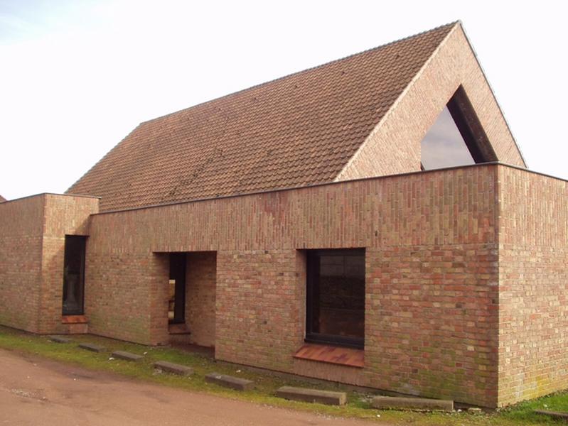 L'église en brique comprend un narthex, un vaisseau et une salle de réunion. Le narthex permet au besoin d'agrandir le vaisseau. Ce dernier, plus large que long, est aménagé de façon à rassembler les fidèles autour de l'autel. Les bancs sont en effet disposés en arc de cercle autour de l'autel situé au milieu d'un des longs côtés de la nef.