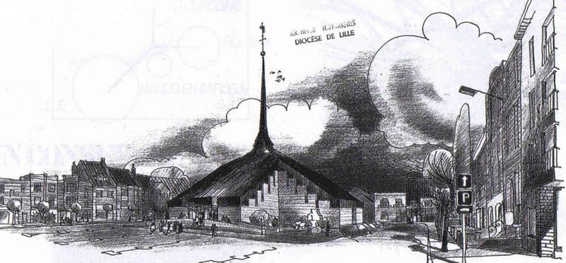 Le béton armé de la toiture de l'église néo-byzantine de 1929 construite dans le quartier du Croisé-Laroche par l'architecte Michel Vilain s'effritant, l'église est fermée en 1985 (cf. IA59002331). Le conseil municipal de Marcq-en-Baroeul décide la reconstruction de l'édifice. L'architecte Maurice Salembier, constructeur de nombreuses églises du diocèse de Lille, dont l'agence est installée à quelques pas de l'église, est chargé de la reconstruction, menée en 1986-1987. Il conçoit un édifice plus petit que le précédent et mieux adapté aux exigences du culte moderne. Un centre culturel, financé avec l'aide de la Fondation de France, est accolé à l'église.