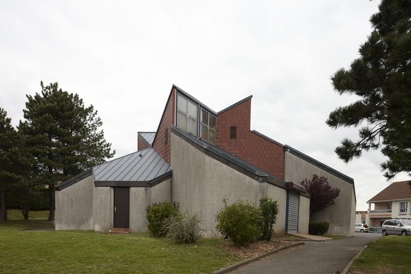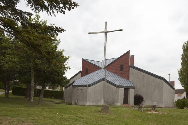 L'église du Sacré-Coeur est implantée en bordure du lotissement résidentiel La Dune au Vent. Sa structure en métal est composée d'éléments préfabriqués tridimensionnels. Le remplissage est en béton cellulaire. La toiture est composée de shingles collés sur des supports en bois. Divers équipements sont conçus par l'architecte en même temps que l'église : un logement pour un prêtre, un parking, une aire de jeu, une place. L'édifice de 300 places, inscrit dans un plan hexagonal, présente un agencement de volumes complexe. Absides et absidioles sont distribuées en étoile autour de l'autel, légèrement surélevé, la disposition des bancs formant un hémicycle.
