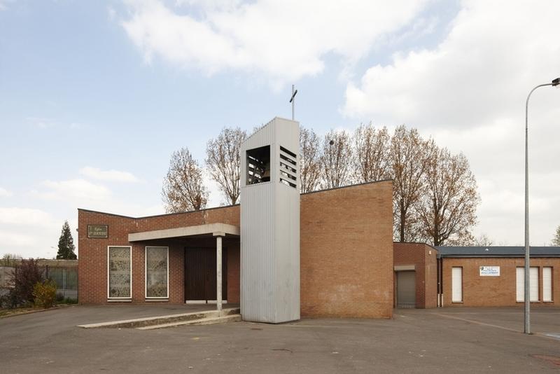 L'ensemble polyvalent en brique est inscrit dans un plan en L. Une aile est réservée à l'équipement cultuel tandis que l'autre est réservée à la salle polyvalente. Le porche couvert de l'église est greffé au pignon sur rue. Un clocher-signal marque également l'entrée. A l'intérieur de l'unique vaisseau, les bancs sont disposés en hémicycle autour de l'autel placé au milieu d'un grand côté, face aux larges baies qui éclairent cet espace.