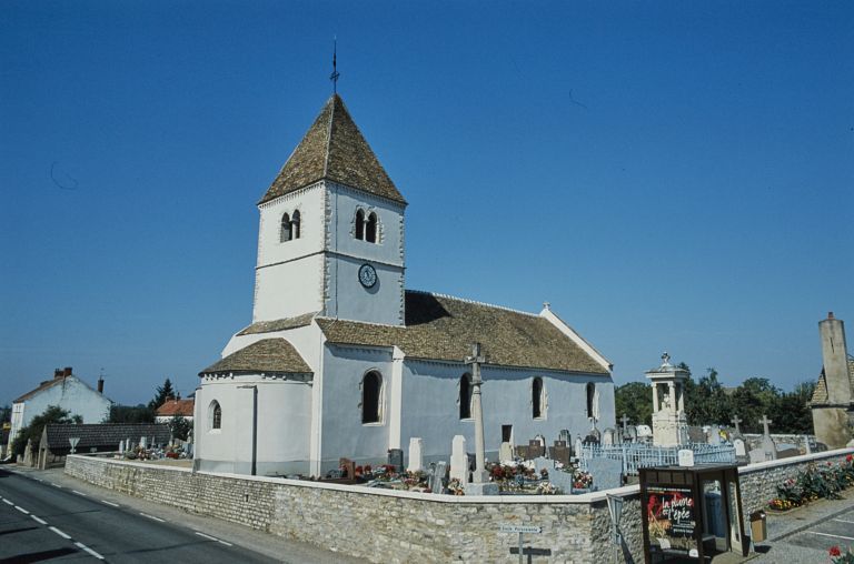 De l'église romane subsistent l'abside et une partie des murs de la nef. Des traces de peinture ocre-rouge, visibles sur le mur nord au niveau du collage avec le mur est de la nef, témoignent de l'adjonction postérieure du clocher, vraisemblablement à la fin du 15e siècle ou au début du 16e siècle. La nef fut en grande partie remaniée, notamment les ouvertures, dans la seconde moitié du 18e siècle. Entre 1864 et 1870 des travaux de restaurations ont été réalisés au clocher sous la direction de Groz, géométre à Damerey, d'après le devis de l'architecte Bosviel. En 1893, les entrepreneurs Charles Pelletier, de Bey, et Michelin, de Damerey, rebâtirent en moellon et brique la cage d'escalier alors en pan-de-bois, et refirent le couvrement et les enduits de la nef ainsi que les toitures, sous la direction de l'architecte Louis Jacob.