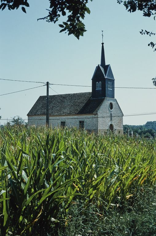 L'ancienne chapelle fut remplacée par une église construite en 1826 sur des plans, datés du 15 mars 1825, dressés par Bourgeois, conducteur des Ponts et Chaussées. Le clocher fut élevé en 1845-1846 suivant les plans de Ruinet revus par Fondet, tous deux architectes à Chalon-sur-Saône.
