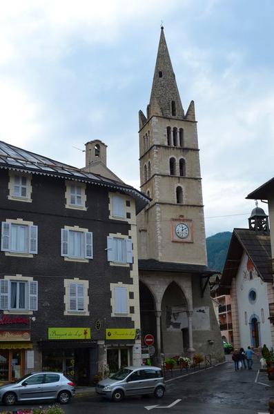 Edifice construit de 1507 à 1532, à l'emplacement d'une ancienne église plus petite, à partir des plans de Galéas. Nouvelle église non orientée sans doute à cause d'un manque d'espace. Le chevet est crénelé pour raisons défensives.