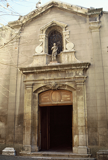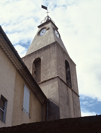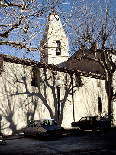 Eglise dédiée à Saint-Jean-Baptiste reconstruite à partir de 1586 à l'emplacement d'un édifice plus ancien (qui avait été consacré en 1033) dont quelques éléments subsistent. L'actuelle construction, consacrée le 20 décembre 1587, comprend trois vaisseaux de trois travées. Clocher de plan carré construit en 1663 sur le flanc nord du chevet. Sacristie de 1663 au sud. Une nouvelle sacristie a été construite en 1844 en même temps que le presbytère et la chapelle des Pénitents.