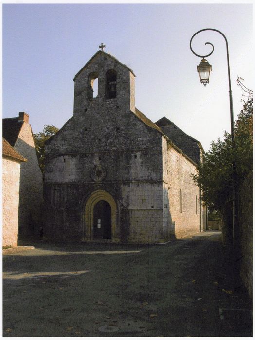 La construction de son église remonte à la fin du 11e début 12e siècle, et a subi des destructions au cours des guerres de religion. Les différentes reprises de maçonneries, notamment au niveau de la façade ouest et de l'élévation sud, de même que l'absence du clocher au-dessus de la travée du choeur montrent les traces de cette période. La nef, ainsi que le clocher-mur datent très vraisemblablement de la fin du 16e siècle. Son plan est normalement orienté. D'ouest en est, trois espaces se succèdent : un clocher-mur précède une nef rectangulaire, puis la travée du choeur, base de l'ancien clocher et enfin l'abside polygonale décorée d'arcatures et corbeaux sculptés.