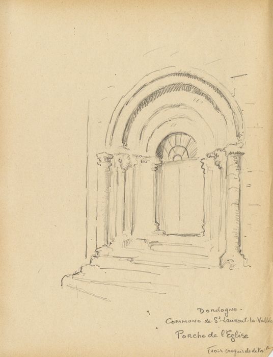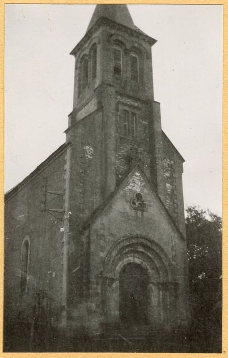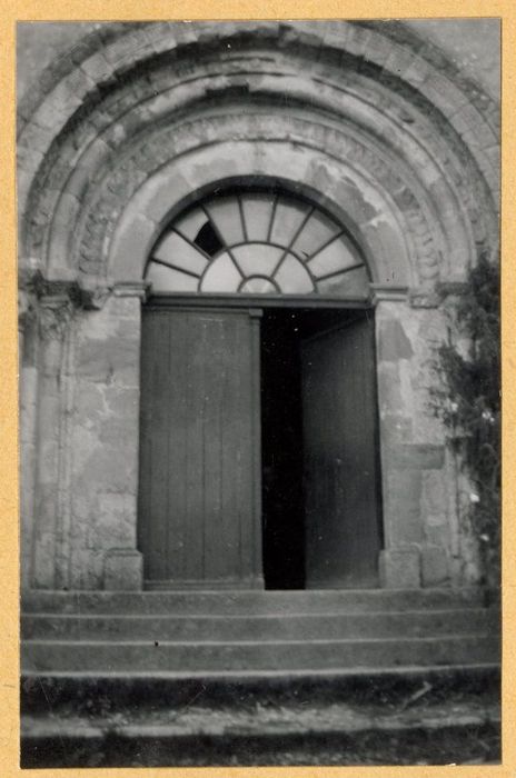 Porche en plein cintre à trois archivoltes sculptées. La première est décorée de feuilles de laurier. La colonne qui devait la supporter a disparu. La seconde est formée d'un boudin de pierre et ornée d'entrelacs. Le chapiteau de la colonne paraît représenter des feuilles et des fruits. La troisième archivolte a des dessins géométriques. Une quatrième colonne ronde, plus grosse que les précédentes, laisse supposer qu'il y avait une autre archivolte. Du côté droit, les chapiteaux sont décorés d'animaux fantastiques. Le reste de l'église a été entièrement refait.