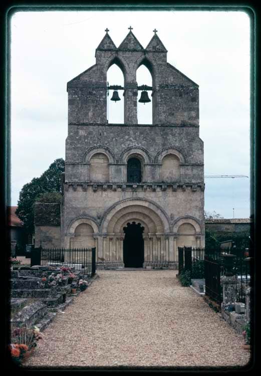Edifice roman du 12e siècle, composé d'une seule nef voûtée en berceau brisé, avec doubleaux retombant sur des colonnes engagées à chapiteaux sculptés avec personnages. La façade occidentale présente un pignon plus élevé que la nef et dont la partie haute, couronnée de trois gâbles surmontés de croix en pierre, est percée de deux baies à arcs ogifs contenant les cloches. De chaque côté, ces baies sont épaulées de deux demi pignons constituant le sommet du mur. Séparé de cet étage supérieur par un bandeau étroit, un autre étage est ajouré de trois baies plein cintre semblables dont la centrale, sous forme de fenêtre, éclaire la nef, les deux autres étant aveugles. Ces baies sont flanquées de deux colonnettes d'angle. La façade est percée d'une porte dont les colonnettes monolythes présentent des chapiteaux sculptés.