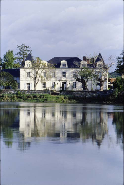 Le château fut construit dans la première moitié du 18e siècle pour une riche famille de négociants bayonnais, les Roll-Montpellier, qui accéda à l'échevinat de la ville en 1725. Il fut complété par un vaste ensemble de communs au 19e siècle. Le château est représentatif des maisons de plaisance élevées dans les pays du Bas-Adour pour la bourgeoisie locale à l'époque classique. D'une architecture simple, l'édifice se compose d'un corps de logis rectangulaire flanqué de deux pavillons et s'ouvre sur la rivière par une terrasse et une cale pavées. A l'intérieur, le vestibule conserve une rampe d'escalier en fer forgé du début du 18e.