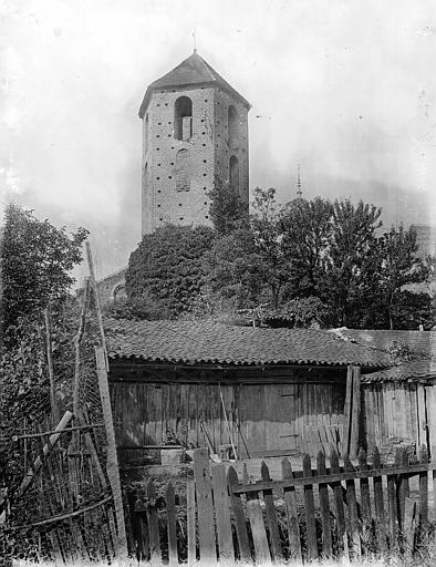 Certaines parties de l'église semblent remonter au 11e siècle. L'église était un vaisseau, presque carré, à trois nefs, sans transepts, terminé par trois absides. L'abside principale est la seule conservée. Elle était précédée d'une travée de choeur voûtée en berceau plein cintre et décorée d'une arcature extradossée de cinq arcades sur colonnes. Le clocher, de forme hexagonale, s'élève à l'extrémité de l'abside principale. Le rez-de-chaussée, attenant presque au mur d'enceinte, est bâti en grand appareil. Les contreforts plats sont unis à leur sommet par des arcatures de quatre arcs en encorbellement. Au-dessus s'élève la tour hexagonale en briques de la fin du 14e siècle ou du 15e siècle.