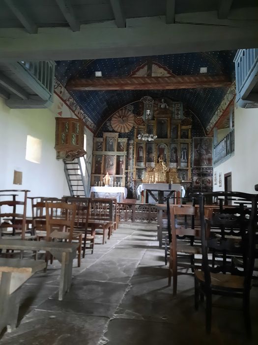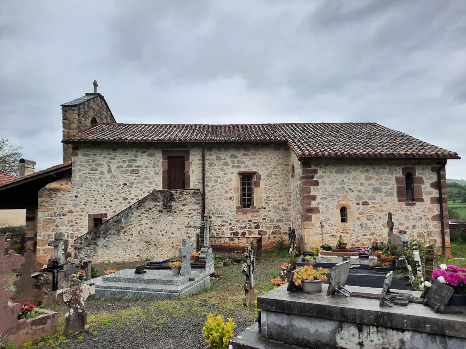 Eglise mentionnée dés le début du 14e siècle (1302). Bascassan au 16e siècle faisait partie du territoire d'Alciette. Sur les vieilles chartes navarraises, elle figurait comme une église importante accueillant une confrérie de Jésus et avec un revenu de 600 livres. La chapelle fut sans doute fréquentée par les pèlerins de Saint-Jacques-de-Compostelle qui passaient par ce chemin secondaire. Tout près de là se trouve une ancienne commanderie-hôpital. Lors de la réunion avec Alciette en 1862, Bascassan perd son titre de paroisse. Elle s'ouvre aux enterrements de Bascassan et aux pèlerinages à la Saint-André. L'église fut pillée à la Révolution des nombreux dons faits par les fidèles. Installée à l'écart du village, l'église est entourée du cimetière et de la benoiterie toute proche. Elle présente un plan simple formé d'un rectangle d'environ quinze mètres de longueur, flanqué d'une sacristie au sud. La façade occidentale est surmontée d'un clocher-mur percé de deux baies campanaires. Le plafond est fait d'un lambris en berceau plein-cintre. Deux retables en bois doré garnissent le mur oriental. Cet ensemble mobilier, daté de la fin du 16e ou du 17e siècle s'accompagne de décors peints aux couleurs vives, revêtant notamment les boiseries de la tribune sud, la chaire, les fonts baptismaux et le lambris du plafond (ciel étoilé au plafond, rinceaux et motifs géométriques ailleurs).