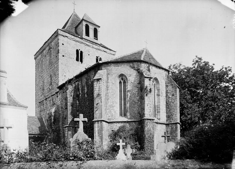 La partie la plus ancienne de l'édifice est son clocher, tour carrée percée de meurtrières et éclairée, à sa partie supérieure, de fenêtres géminées en plein cintre. Ce clocher doit remonter à la fin du 12e siècle. Le reste de l'église, comprenant une travée barlongue et l'abside polygonale, a été édifié au 14e siècle.