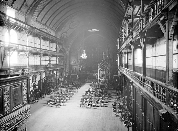 Le 9 juin 1660 y fut célébré le mariage de Louis XIV avec l'infante Marie-Thérèse d'Espagne. L'édifice est également un type parfait des églises du Pays Basque français. Il semble avoir été bâti au cours de la première moitié du 15e siècle et comprend une nef unique voûtée de pierre. Modifiée au 16e siècle, elle fut élargie et seul le mur méridional fut conservé. Particularité des églises basques, les murs de la nef sont entourés de galeries et la tribune est adossée au mur occidental. Ces balcons à trois étages ont été élevés à la suite des procès de sorcellerie dirigés par le Président d'Espaignet et Pierre de Lancre, en 1576. La répression ramena la foule dans les églises qui, trop exigues pour recevoir cette affluence, furent agrandies. Au lieu de démolir les édifices pour en reconstruire de plus vastes, la surface disponible fut augmentée en élevant des tribunes et des galeries. La nef fut dès lors réservée aux femmes et les galeries aux hommes.
