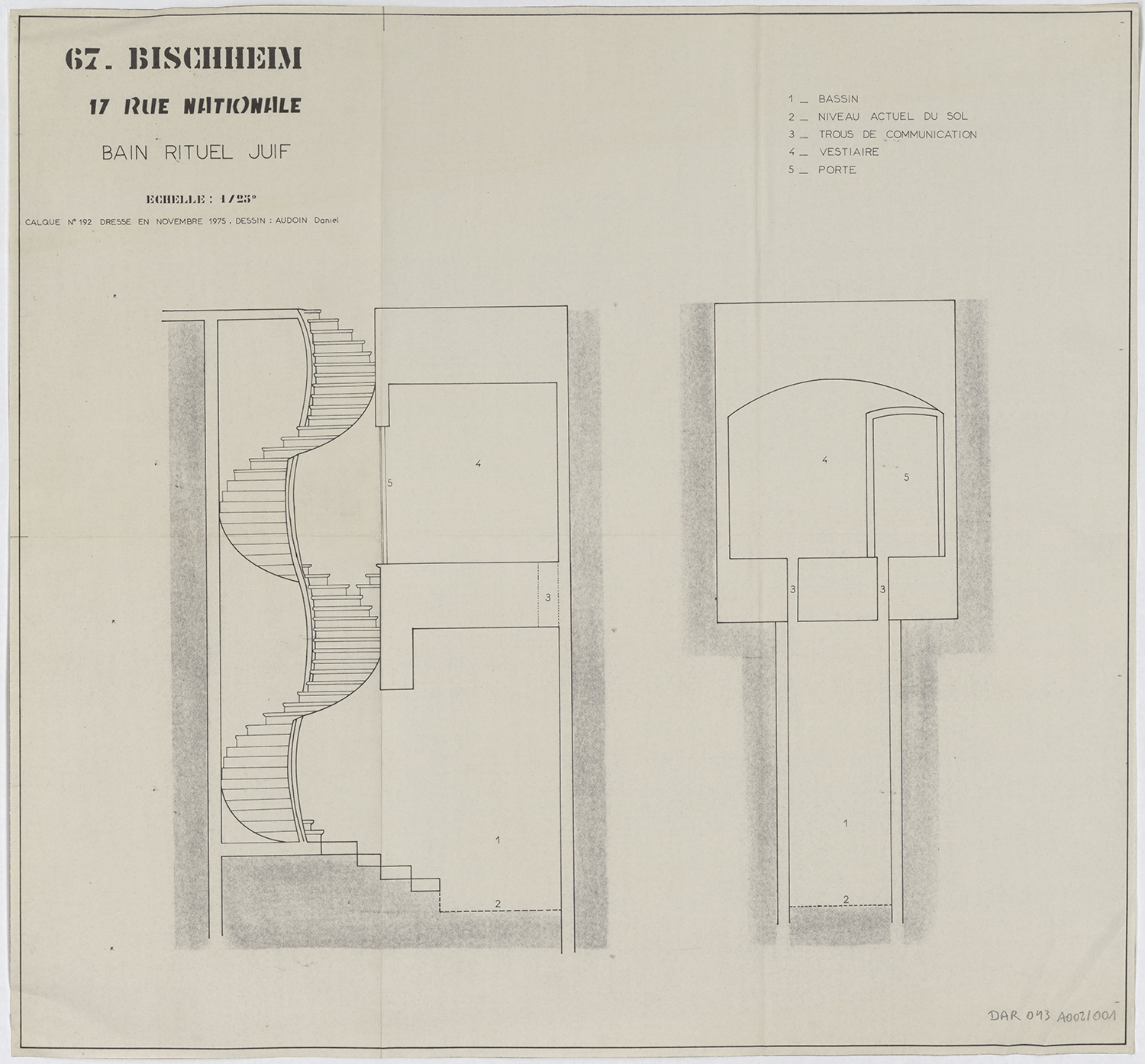 Bain rituel juif avec son escalier d'accès et sa salle-déshabilloir (cad. 3 3) : classement par arrêté du 17 mai 1977