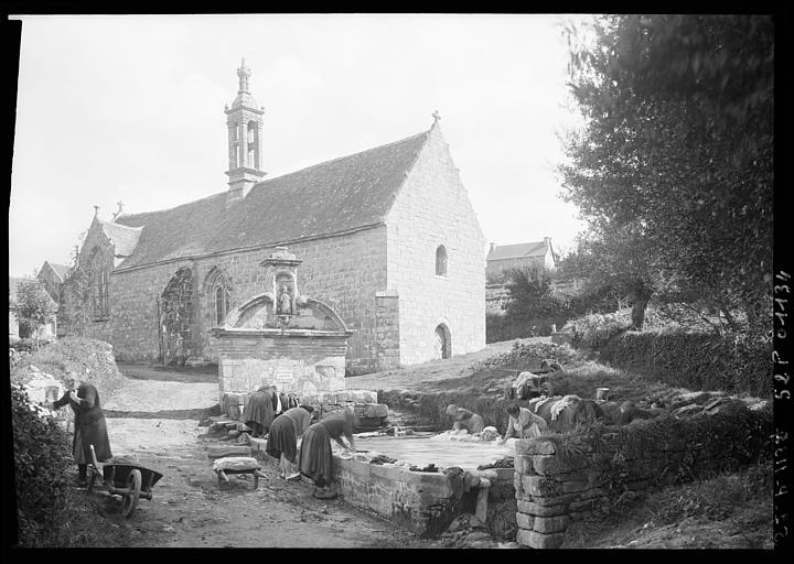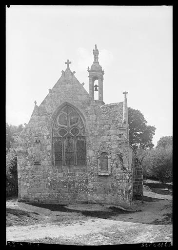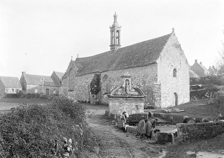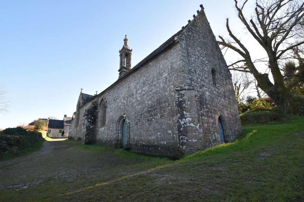 Cette chapelle consiste en un édifice rectangulaire séparé en deux par un arc diaphragme et portant un clocheton amorti en dôme. Elle présente des restes du 15e siècle, notamment sa porte gothique avec voussures interrompues par des chapiteaux, mais a été très remaniée et agrandie au 15e siècle ainsi qu'au 18e siècle, date du clocheton. Dans le testament de Jean Le Moine, daté 1439, elle est dite nouvellement construite. Cette chapelle est la cinquième station du parcours de la Grande Troménie qui a lieu tous les six ans et est jalonné de douze stations sur un parcours de 12 à 13 kilomètres. Il est également à noter qu'au 15e siècle, la piété populaire adjoignit au patron du pays un saint étranger, vénéré au second plan, mais avec un attachement sincère, Saint-Eutrope le Saintongeais, patron des hôpitaux. Au nord de la grande place, en contrebas, s'élevait une maison placée sous son vocable ; il n'en reste plus que des vestiges informes. Plus bas, à la lisière du bocage, se trouve une chapelle Bonne-Nouvelle (Kelou Mad) , édifice rectangulaire de la fin du 15e siècle, sans bas-côtés. Le petit dôme du clocheton qui la surmonte en son centre, planté sur une forte arcade transversale à l'intérieur, émerge du feuillage. Cette modeste chapelle eut jadis un certain éclat ainsi que l'attestent des fragments de vitraux et quelques sculptures. Le clocheton, refait à une basse époque, semble contemporain de la grande fontaine voisine qui date de 1698. De là, en relevant les yeux vers la petite ville, on aperçoit, triomphant sur le paysage, la grosse tour robuste de la grande église, tandis qu'au fond de l'horizon, de l'autre côté, ondulent les masses bleues du Ménez-Hom et de la presqu'île de Crozon.