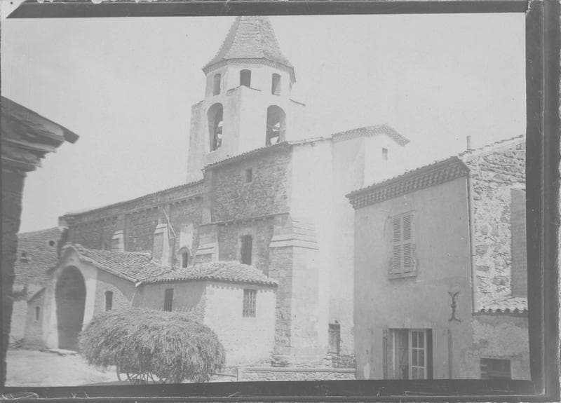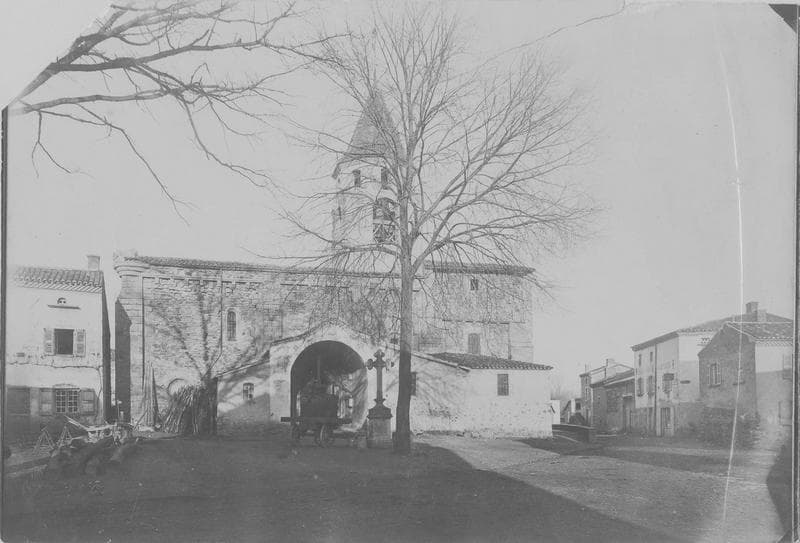 L'église est un sanctuaire du 13e siècle, à nef unique et choeur carré, autour duquel se sont développés au cours du 15e siècle des éléments de fortification, puis des extensions de l'église. Le clocher, édifié sur quatre arcades en plein cintre, s'élève sur la travée tenant lieu de transept. Son couronnement est du 19e siècle. A l'intérieur, le voûtement du choeur repose sur des culots à personnages. Le portail sud présente des colonnettes et des chapiteaux ; les vantaux sont ornés d'arcs trilobés.