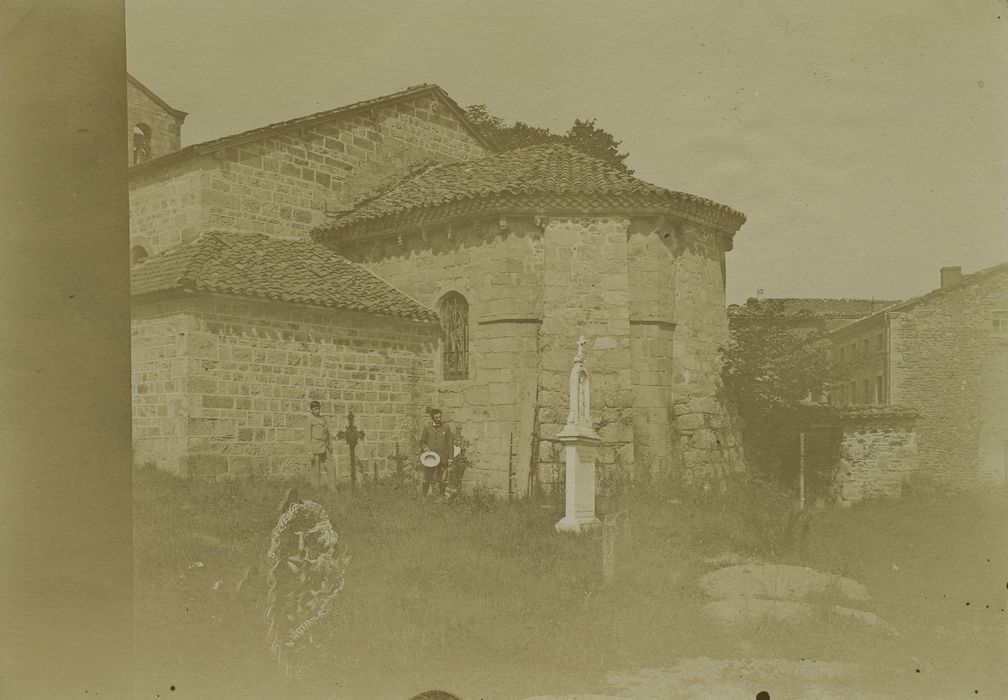 L'église se compose d'une nef avec bas-côtés, construction moderne de style neo-grec, et d'une abside romane présentant à l'extérieur trois pans consolidés par des contreforts et circulaire à l'intérieur. Le pourtour est orné d'arcatures ayant perdu leurs colonnettes. A l'extérieur ne subsiste que la corniche ornée de modillons sculptés.