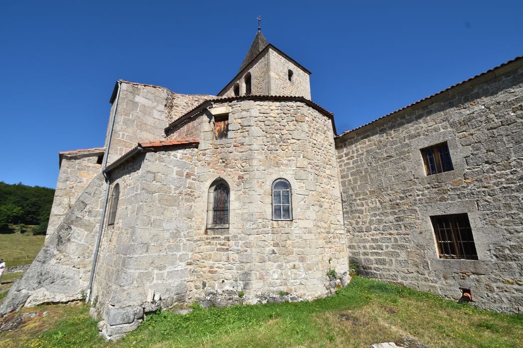 Avant 1300, la paroisse de Grèzes dépendait de l'évêché de Mende. A cette date, le prieuré de Grèzes est attaché à l'abbaye de Pébrac. Clocher donjon de plan barlong, portant des traces d'élémens défensifs (meurtrière cruciforme, fenêtres hautes géminées). Portail à bossages et linteau droit du 17e siècle. L'entrée originelle se trouvait au sud, obturée au profit d'une petite fenêtre trèflée. A l'intérieur, l'élévation a été remaniée du côté de l'abside. Chapiteaux à décor végétal ou animal.