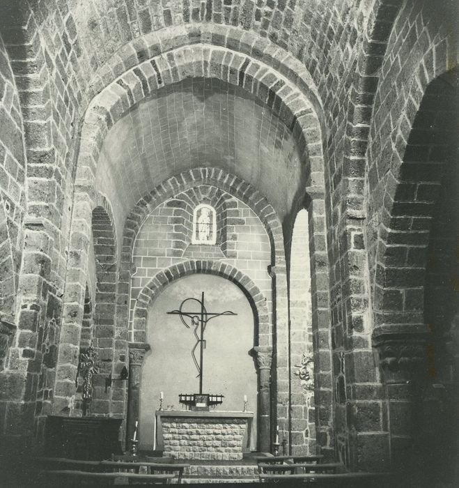 Edifiée au 12e siècle, complétée par les chapelles latérales au 15e et 16e siècle, l'église a été amputée de son chevet à la suite de l'écroulement du clocher, ainsi que de sa partie occidentale. Le clocher a été reconstruit en 1814 sur plan carré. Ce qui subsiste de l'édifice comprend une nef de trois travées, flanquée de chapelles. L'intérieur montre des éléments sculptés de belle qualité : chapiteaux romans de l'arc triomphal et des piliers de la nef, culots de retombée d'ogives du 16e siècle ainsi qu'une clef de voûte représentant l'Agneau mystique entre deux anges, datée 1503.