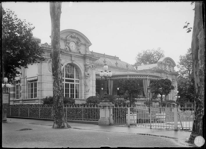 Premier casino construit à la demande de Napoléon III en 1864-1865 par l'architecte Badger (décor sculpté dû à Carrier-Belleuse, peintures de Jules Petit). A la fin du siècle, extension du casino par l'architecte Lecoeur, élève de Labrouste : travaux commencés en 1900, terminés en 1902 (décoration Art Nouveau avec des ferronneries d'Emile Robert). Quelques transformations postérieures conduites par l'architecte Simon. Le casino forme un ensemble architectural complet avec le grand établissement thermal et le parc des Sources.