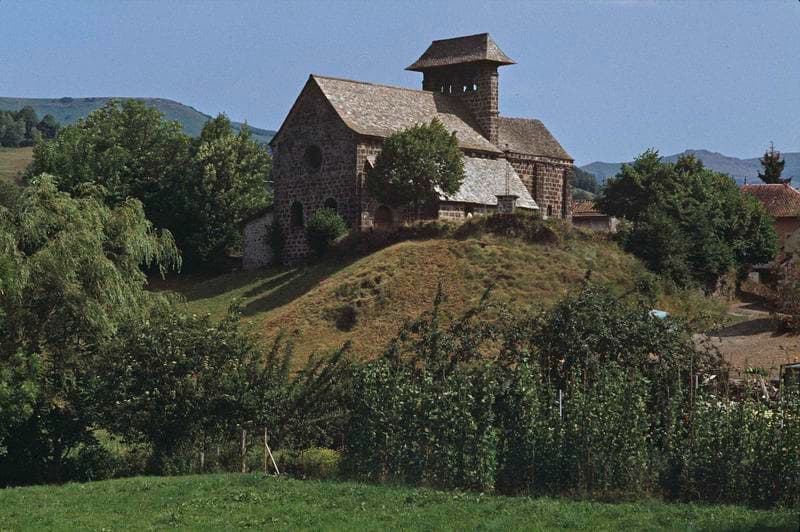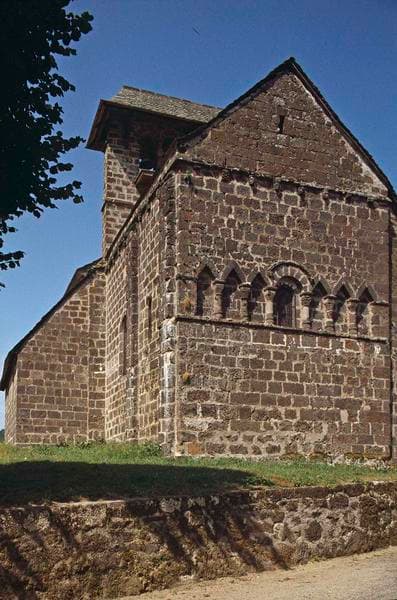 L'église était un prieuré qui dépendait de l'abbaye de Saint-Géraud d'Aurillac. Les religieux de Saint-Géraud la construisirent au 12e siècle. Nef unique voûtée en berceau renforcé par deux doubleaux, choeur plus étroit voûté de même, et abside circulaire à l'intérieur, couverte par un cul-de-four, mais terminée à l'extérieur par un chevet plat, dispositif d'origine provençale. Aux 14e et 15e siècles, deux petites chapelles ont été rajoutées de chaque côté de la nef. Sur le portail, seuls le cordon d'archivolte et le bandeau d'imposte sont ornés d'entrelacs et de billettes. A l'intérieur, les chapiteaux des colonnettes du choeur et de l'abside sont sculptés.