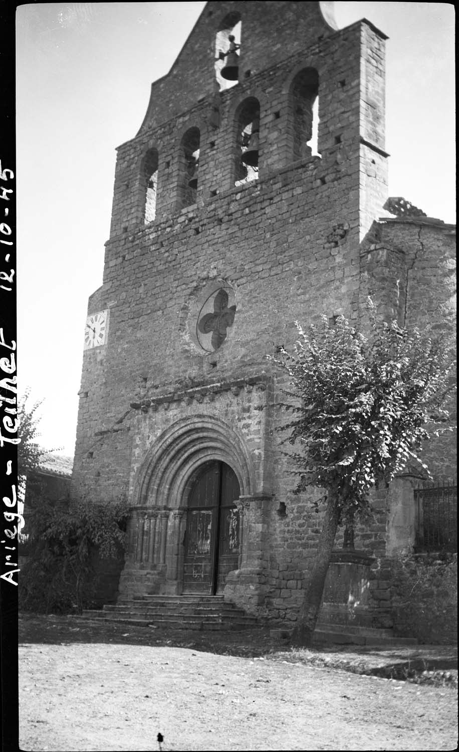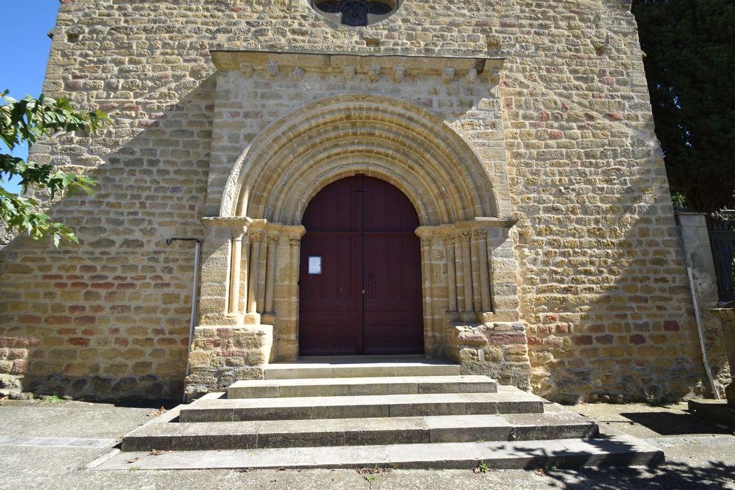 Cette église était l'une des dépendances du prieuré de Camon. En 943, l'église est donnée par le prieur à l'abbaye de Lagrave. Le plan primitif, qui était une salle rectangulaire, date du 12e-14e siècle. La façade, avec son clocher peigne, date du 14e siècle. Ce plan a été modifié par l'adjonction de chapelles et l'ouverture d'un oeil de boeuf dans la façade. A l'intérieur, quatre colonnettes supportent autant d'arcatures cintrées sur des chapiteaux ornés d'animaux fantastiques enchevêtrés. Une frise portée par des consoles en forme de têtes couronne cet ensemble. Le portail est surmonté par une haute muraille réalisée après les guerres des Albijeois. La construction ancienne s'arrête au-dessus des arcades. Un cavalier couvert de haubert et de mailles, le bouclier au bras, semble sortir de la muraille.