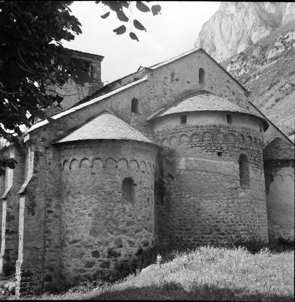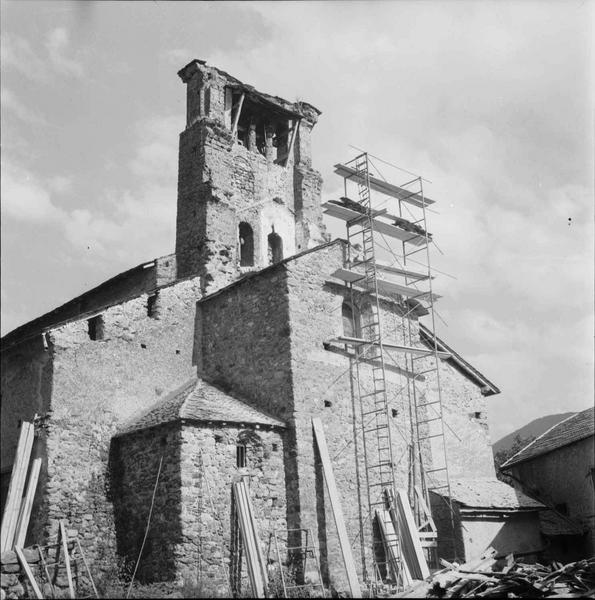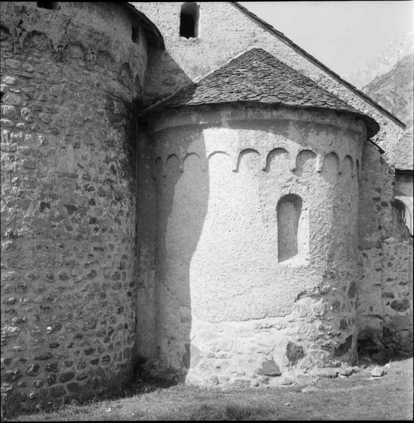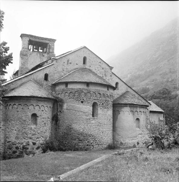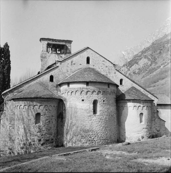 Edifice du 12e siècle à trois nefs voûtées en berceau, aboutissant à un choeur formé d'une abside et de deux absidioles. Des piliers carrés, sans chapiteau, reçoivent des doubleaux des voûtes. A l'ouest s'élevait un clocher carré dont une moitié a été enlevée par les inondations successives d'un torrent. Il en reste une face complète avec quatre arcades dont les baies sont ornées de colonnettes engagées avec chapiteaux sculptés.