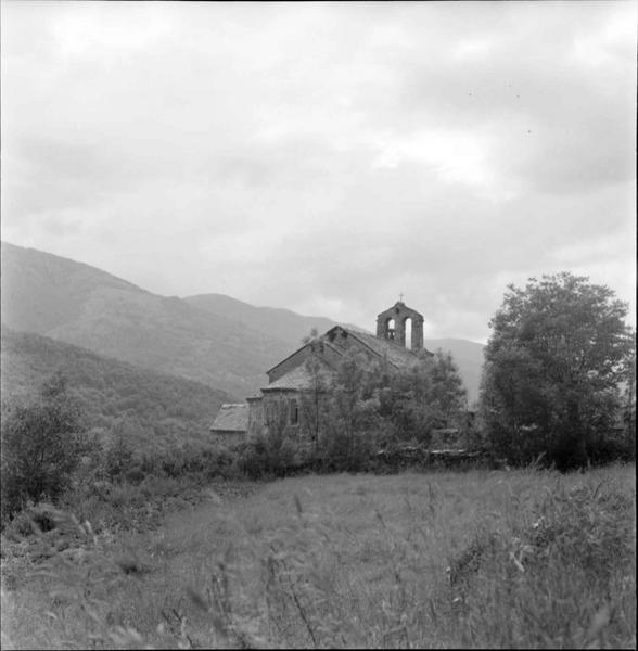 Eglise du 12e siècle, possédant une nef avec abside précédée d'une travée de choeur et deux absidioles disposées de chaque côté en forme de trèfle accusé à l'extérieur. La nef est voûtée en berceau . Un petit clocher à arcades, remanié, couronne la façade ouest.