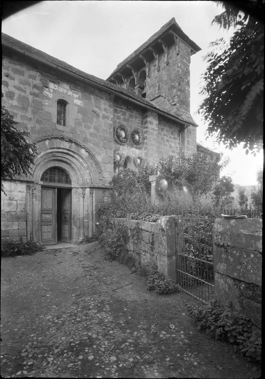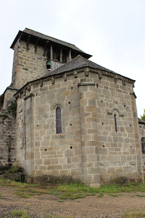 La nef et le choeur sont couverts par un berceau plein cintre et l'abside, qui a trois pans à l'extérieur, est voûtée en cul de four. L'arc triomphal retombe sur deux colonnes détachées à chapiteaux sculptés. A l'extérieur, la sculpture des chapiteaux du portail, des corbelets et de la corniche de l'abside, est très caractéristique. Les têtes d'hommes et d'animaux sont traitées "à l'assyrienne". Sur le doubleau qui précède le choeur s'élève un clocher à peigne qui paraît roman, mais dont la toiture doit remonter au 16e siècle.