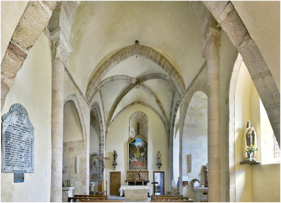 Edifice à nef unique (12e siècle) , chevet plat à choeur gothique, chapelles latérales conservant d'importants vestiges romans et des éléments gothiques. Le transept appartient à la période gothique plus tardive (16e siècle).