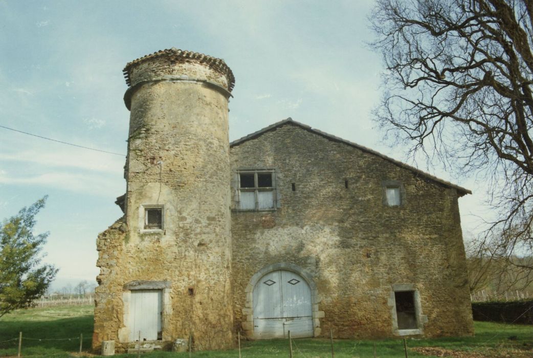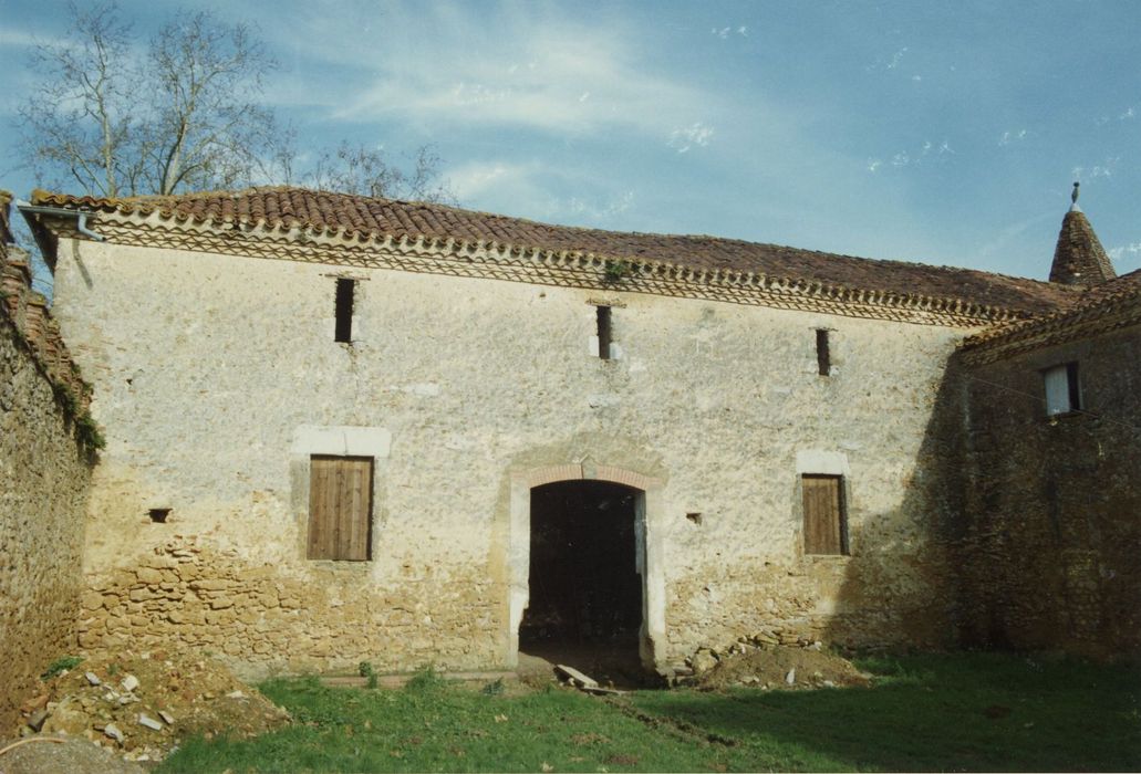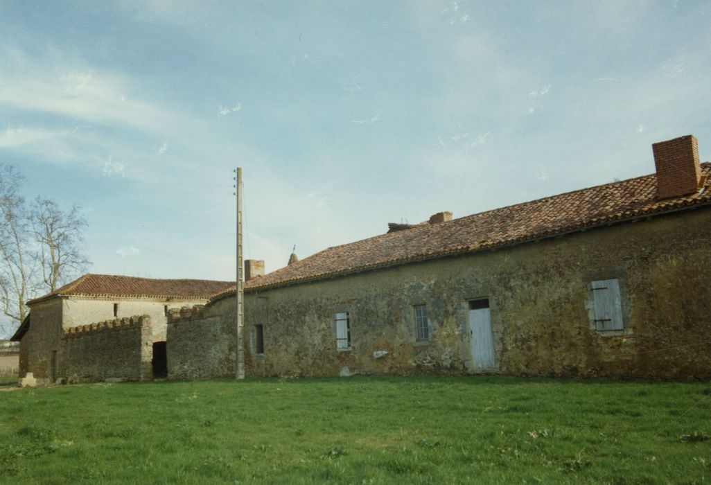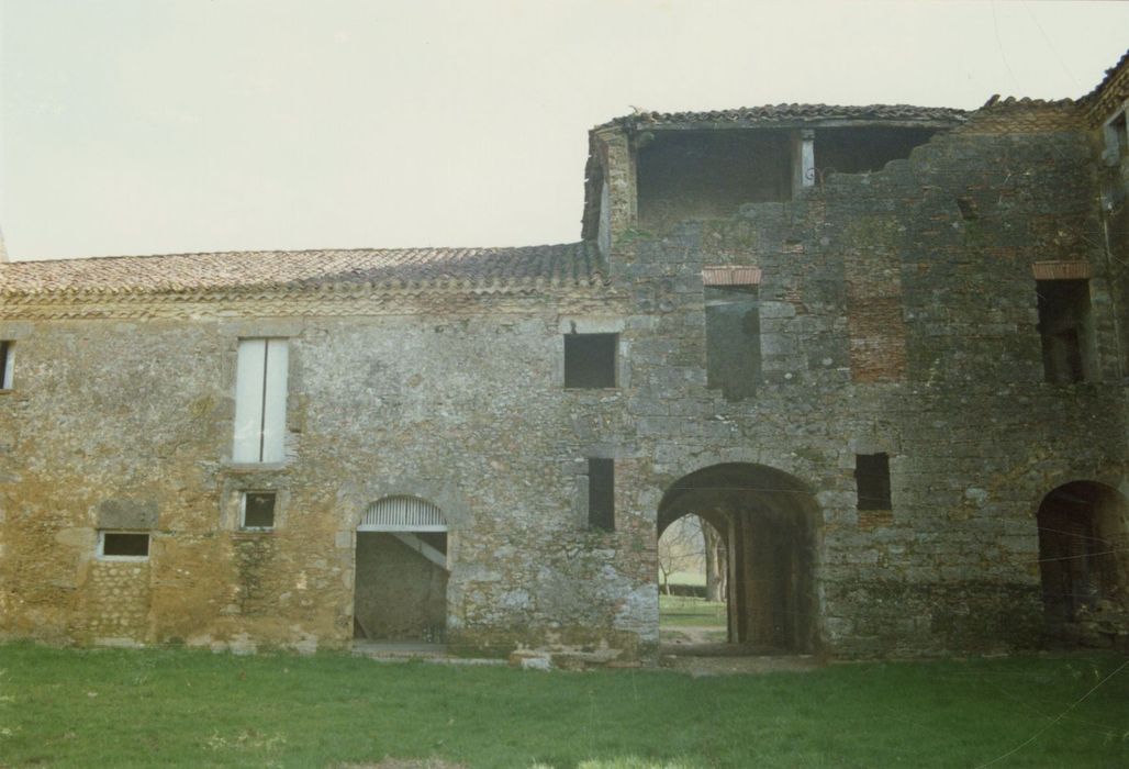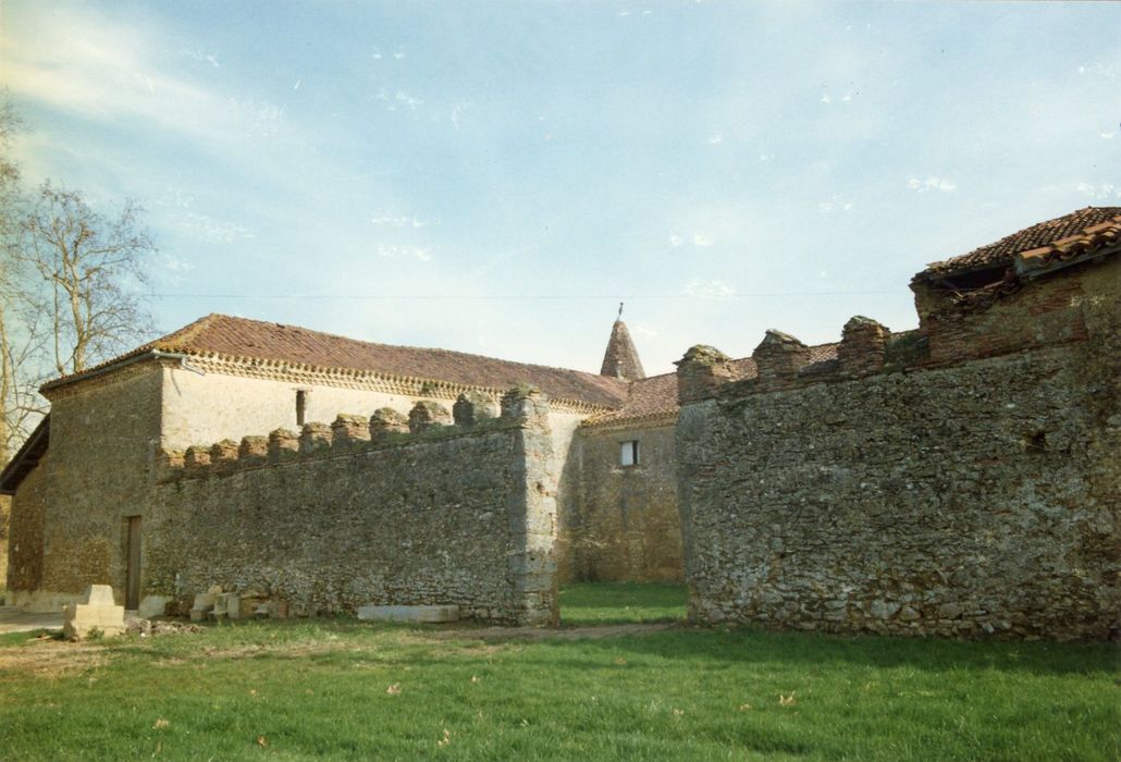 Château du 14e siècle, formé de trois bâtiments distincts autour d'une cour. A l'est se trouve le chai dont la toiture est supportée par deux rangées de piliers en bois. Une tour ronde à la base carrée en flanque la façade. A l'ouest, le bâtiment ancien a été prolongé au sud et au nord par des éléments plus récents. Le quatrième côté de la cour est protégé par un mur crénelé, flanqué au nord d'une tour ronde percée de meurtrières. Le château semble avoir été rebâti au cours du 17e siècle, sur un donjon ou une salle gasconne plus ancienne. Au premier étage, une grande salle située au-dessus de la chapelle conserve des peintures murales fin 15e-début 16e siècle, influencées par l'Ile-de-France. De part et d'autre des deux fenêtres à meneaux sont peints des couples sous des rideaux ocres. Une cariatide nue parée de tresses, avec une couronne de feuillage à la taille, enrichit le décor d'architecture. Une frise ornée de putti court au niveau du premier étage. Dans l'angle nord-ouest se retrouve ce même motif enrichi d'un arbre à feuillage exotique.