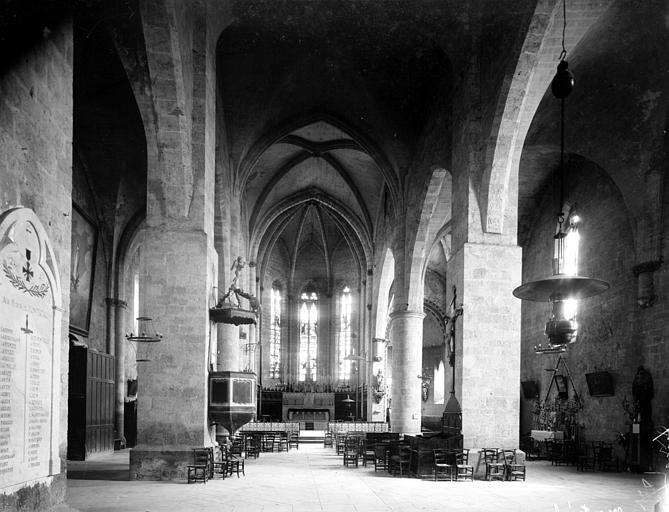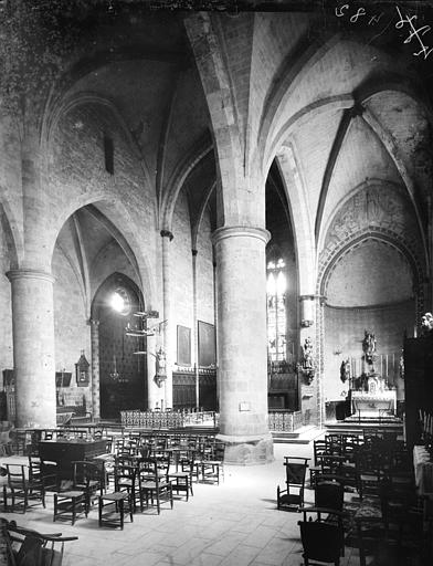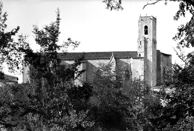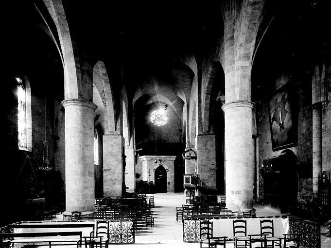 Edifice du 14e siècle, à trois nefs, en partie remanié arpès sa démolition partielle au cours des guerres de Religion. Les voûtes des trois premières travées de la nef ainsi que la charpente ont été refaites à ce moment là. L'absidiole sud est voûtée en cul-de-four et sa construction paraît antérieure à celle du reste de l'édifice. Le choeur et l'abside centrale sont voûtés sur croisées d'ogives, ainsi que l'absidiole nord, et paraissent n'avoir subi aucune transformation. L'église s'ouvre au nord par un porche voûté sur croisée d'ogive. Les colonnettes recevant la retombée de l'arc sont ornées de chapiteaux sculptés. Les nervures de la voûte s'amortissent sur des culots sculptés. Une série d'arcatures surmontée de trois lancettes et d'un réseau décoratif, orne les faces latérales intérieures. Des niches avec culots et dais sculptés supportaient autrefois des statues. Le tympan, soutenu par un arc surbaissé, est orné d'un décor géométrique. Trois niches avec dais et culots sculptés, placées de chaque côté et au-dessus du portail, achèvent la décoration de l'ensemble.