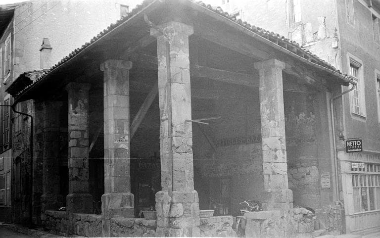 En 1266, le comte de Lautrec accorde de nombreux privilèges aux habitants de la ville, parmi lesquels figure la donation d'un emplacement pour la halle destinée aux échanges commerciaux. Certainement amputée d'une bonne partie de son ancienne apparence. Elle devait occuper presque tout le pâté de maison (des piliers sont pris dans la maçonnerie des maisons voisines). Il reste malgré tout cinq piliers soutenant la vieille charpente, à l'angle d'une rue. Son originalité est d'être accompagnée par un corps de garde datant de la veille de la Révolution et signalé par une plaque sans doute d'origine.
