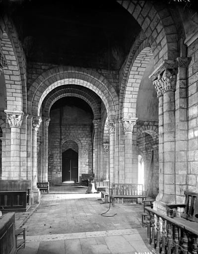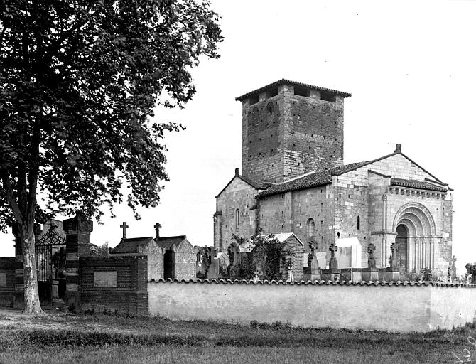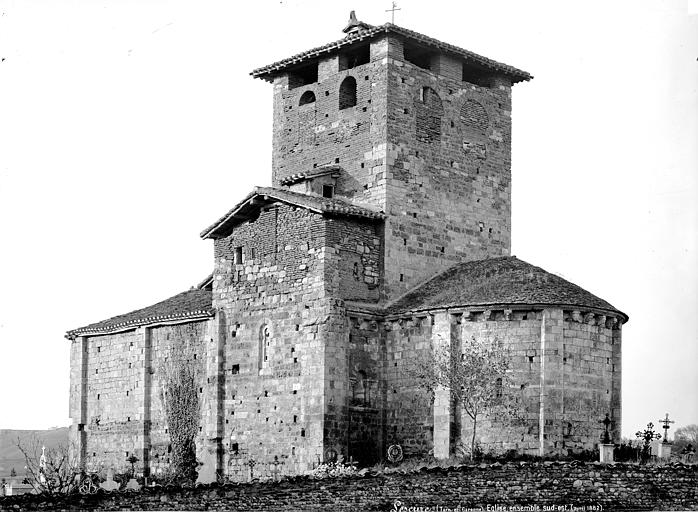 L'église, entièrement construite en pierre, se compose d'une nef avec bas-côtés dont le mur qui mène au choeur est percée de deux petites fenêtres ornées chacune de deux colonnes miniatures aux chapiteaux à feuille d'eau. L'édifice s'ouvre par un grand portail en arc plein cintre richement orné (ornementation végétale, têtes humaines et d'animaux...). Les chapiteaux des colonnes du portail représentent la tentation d'Adam et Eve, le sacrifice d'Abraham, le mauvais riche. A l'intérieur, au centre de l'église, quatre colonnes soutiennent un commencement de coupole. Bas-côtés et sanctuaire sont voûtés tandis que la nef est couverte par un plafond à planches.