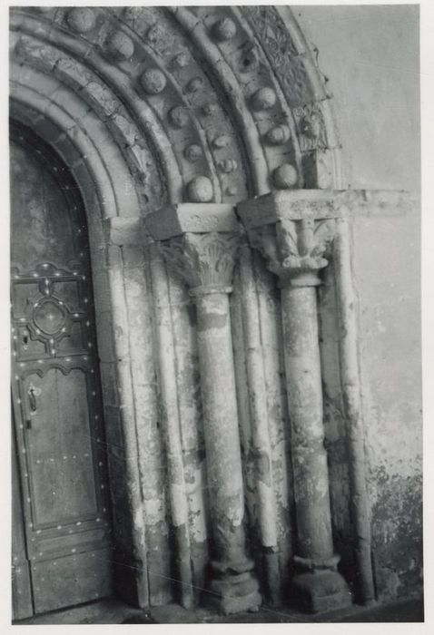 Cette église dépendait de l'abbaye de Candeil, monastère bénédictin de l'ordre de Cîteaux, filiation de Clairvaux, fondé vers le milieu du 12e siècle. Le portail roman est le seul vestige de la construction primitive, avec les bases de la chapelle sud. Tout le reste de l'édifice a été reconstruit au 16e siècle et a subi de nouvelles restaurations au 19e. L'église se compose d'une nef unique à chevet plat et de deux chapelles formant croix latine. Le portail s'ouvre au sud de la nef. L'arc intérieur, en plein cintre, est précédé par deux rouleaux successifs, garnis de colonnettes. Chacune des arêtes saillantes des piédroits est mouluré d'un boudin. Il existe aussi quatre boudins successifs à chaque montant. Les corbeilles, liées aux astragales, sont sculptées (feuillages). Les moulurations de l'archivolte se composent de sept éléments concentriques. La polychromie est assurée par la couleur des pierres : grès jaunacé, grès rouges.